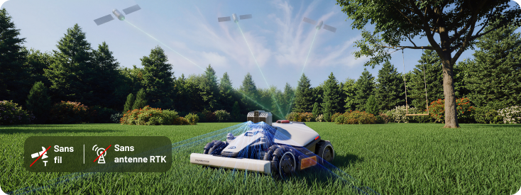 Nicht de câbles enterrés. Nicht de stations de base. Nicht d'installation compliquée. Que votre Rasen soit ouverte et spacieuse, entourée d'arbres ou partiellement ombragée par des Wände et des bâtiments, LUBA s'adapte automatisch et conserve un Positionierung stable et au centimètre près.