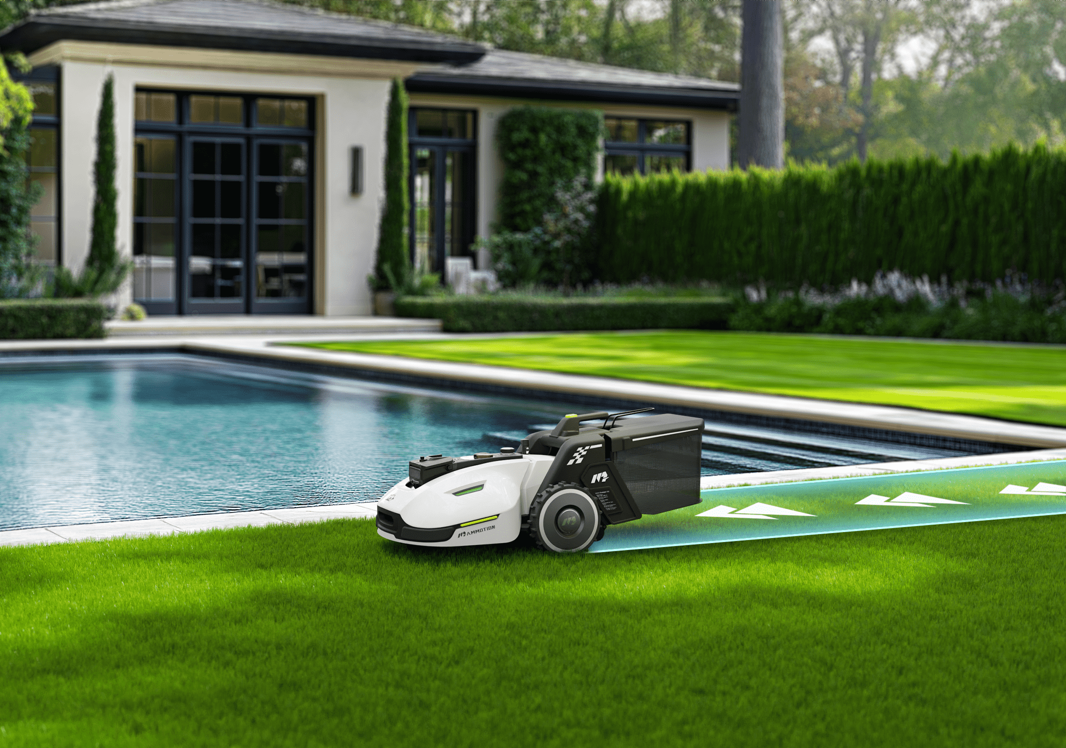 YUKA excelle dans les environnements extérieurs exigeants, naviguant facilement dans les passages étroits, unter Bäumen ou dans des Gartens complexes. Dank sa technologie UltraSense™ AI Vision, elle tond perfekt votre Rasen sur une distance impressionnante de 300 mètres, même en cas de perte temporaire du signal satellite. Sobald la connexion rétablie, le système se reconnecte automatisch pour garantir une tonte impeccable.