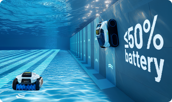 Nettoie d’abord les parois, puis passe au fond lorsque la batterie atteint 50 %.