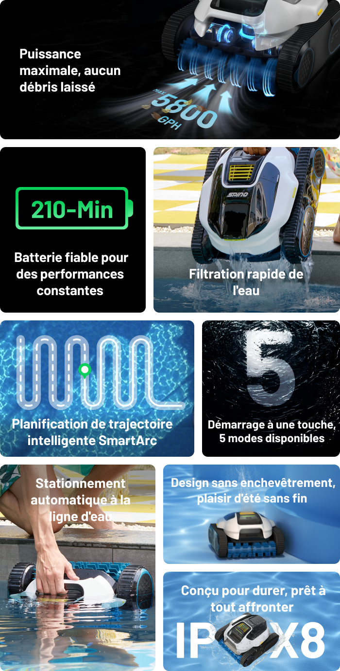Nettoyage en profondeur des parois mit une Akkulaufzeit allant jusqu’à 180 minutes.